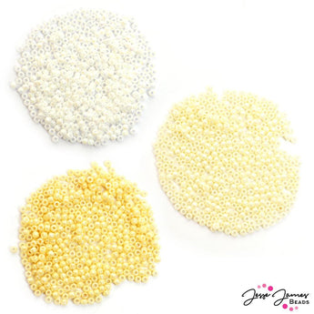 These elegant matte shades come in white, off-white, and antique white. Each pack includes 5 grams of each color, approx. 1500 seed beads total! Seed beads are Toho size 11/0 or 2.1 mm in diameter.