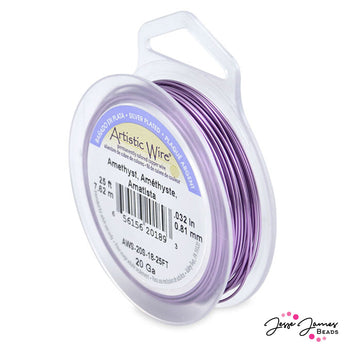 Add a pop of Amethyst to your Halloween, Gemtones, or other design project. This Artistic Wire is Silver Plated Tarnish Resistant Colored Copper Craft Wire. 20 Gauge / .81 mm. Each spool includes 25ft of wire.