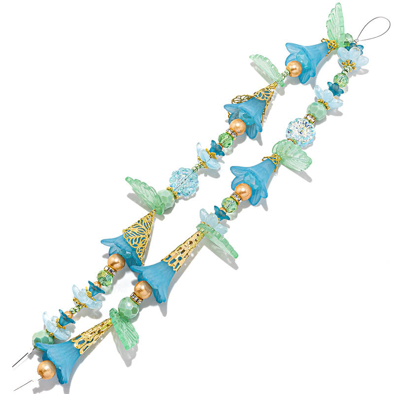 This beautiful duo of 7-inch strung beads features stunning hand-dyed acrylic flower beads paired with pressed glass flowers, faceted glass rondelles, faceted glass rounds, glass pearls, glass leaf beads, gold-plated metal bead caps, gold-plated metal bead spacers, rhinestone spacers, and more. With 14-inches of beads to choose from, this set easily transforms into earrings, bracelets, and necklaces. Each set includes over 80 beads to create with. Largest bead in set measures 22mm x 21.5mm. Smallest bead measures 4mm.