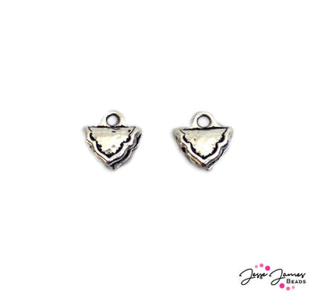 This crimp end features graceful lines and a lightly hammered finish. Perfect as an ending for loomed beadwork or for making DIY tassels. Open crimps with pliers and use adhesive as needed. 12.3mm X 12.3mm