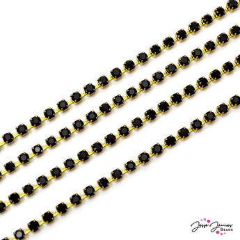 Dark jet black and gold sparkle in harmony on this beautiful cup chain. Preciosa Maxima Cup Chain SS12. Sold in 1 meter increments. Each link measures 3.1 mm. Stock is limited, if stock runs out before your order is processed you will be issued a refund.