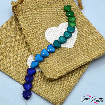 Enjoy an ombre of color with this 7 inch bead strand. This strand features beautiful faceted heart glass beads in an ombre of dark blue, teal, and green. Beads measure 12mm in size.