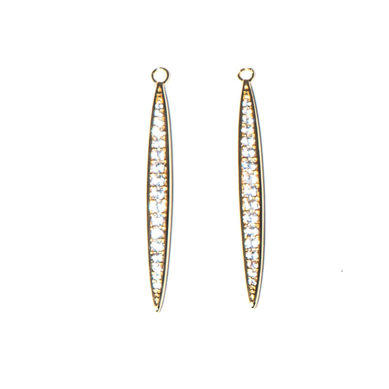 Add a sparkling, elegant touch to your jewelry with these Brass Micro Pave Clear Cubic Zirconia Pendants in a sophisticated horse-eye shape. Crafted from high-quality brass and finished with real 18K gold plating, they offer a brilliant, long-lasting shine that enhances any design. These pendants are cadmium free, nickel free, and lead free, making them safe and comfortable for all-day wear. Measuring 35x3.5x2mm with a 1.5mm hole, they provide the perfect size for attaching to chains, earrings, or layered jewelry pieces. Ideal for DIY jewelry makers and professional designers, these micro pave CZ pendants combine dazzling sparkle, refined elegance, and reliable durability in one versatile component. 2 per set.