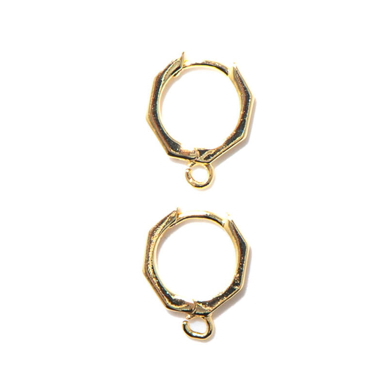 Create bold, geometric designs with these Brass Hoop Earring Findings in a modern octagon shape, perfect for adding structure and style to your jewelry creations. Crafted from high-quality brass and finished with real 18K gold plating, they feature a rich, radiant shine that enhances both contemporary and classic looks. These hoops are cadmium free, nickel free, and lead free, offering a safer and more comfortable option for everyday wear. Measuring 17.5x16x3mm with a 1~1.2mm hole and a sturdy 1mm pin, they provide reliable durability while remaining lightweight and easy to wear. Ideal for minimalist statements or customized with charms and beads, these octagon hoop findings combine elegance, strength, and versatile design potential. 2 per set.