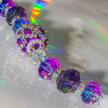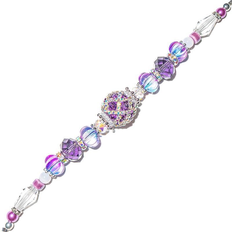 Boho Bead Strand in Space Walk was inspired by the colors of the Orion Nebula. Each 7-inch strand is a mix of cosmic purples and smoky quartz, with a glittering focal bead that is out of this world. 25 pieces. Bead sizes range from 2 mm to 17 mm.