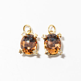 Elevate your jewelry creations with these Brass Pave Cubic Zirconia Pendants with Glass. Designed in a stylish oval shape featuring a star charm, each pendant shimmers with pave-set cubic zirconia for a touch of brilliance and detail. Crafted from durable brass and finished with real 18K gold plating using rack plating for long-lasting shine, these pendants are both luxurious and practical. The amber brown color adds a modern, versatile edge, perfect for pairing with a variety of styles. Measuring 13x8.5x6mm with a 3mm hole and a convenient jump ring, they are easy to incorporate into necklaces, earrings, or bracelets. Cadmium-free and lead-free, these pendants are a safe and elegant choice for creating standout jewelry pieces.