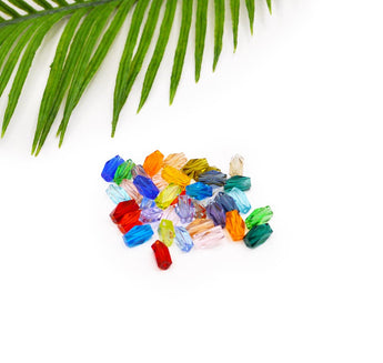 These beautiful imitation Austrian Crystal glass beads features a faceted column shape. Each set of 40 beads features 8mm x 5mm beads in a rainbow of colors. Perfect for earrings, bracelets, and more.