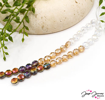 Add a little expresso to your next bead project with this stunning Latte inspired ombre of beads. This bead strand features an ombre of crystal, tan, and AB brown. 14-inches of beads in total. Approx 36 beads to create with. Each bead measures 8mm x 5mm.