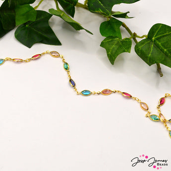 Infuse your jewelry designs with playful elegance using the 18K Gold Dangle Chain in Charm Me. This 18-inch chain is designed to bring color and movement to your creations with its delightful colorful glass heart and rectangle charms, each dangling gracefully to add a touch of charm and whimsy. Crafted with 18K gold plating, this chain offers a luxurious, radiant finish, while being lead-free, cadmium-free, and nickel-free for safe, long-lasting wear. The delicate 2x0.6mm link size ensures the chain is lightweight and perfect for adding a lively pop of color to necklaces, bracelets, or earrings.