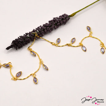 Create jewelry that captures the elegance of nature with the 18K Gold Dangle Chain in Wisteria. Perfect for designers seeking to add movement and beauty to their creations, this 18-inch chain offers a perfect balance of sophistication and playfulness. Crafted with handmade brass links and glass beads, the chain features a dynamic combination of 3.5x2.5x0.3mm and 18x3x1mm links, creating an intriguing dangle effect that catches the light beautifully. Plated with 18K gold, the chain adds a luxurious, radiant finish to your designs.