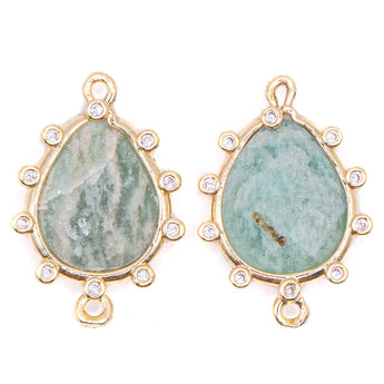 Infuse your jewelry designs with soothing, oceanic energy using these Natural Amazonite Faceted Connector Charms. Set in lustrous rack-plated golden brass, each charm features a faceted teardrop of genuine amazonite paired with a clear cubic zirconia accent, adding a subtle sparkle to the stone’s soft, tranquil hue. Sized at 22.5~23x15x5mm, these double-loop connectors are perfect for creating standout focal points in necklaces, earrings, and bracelets. The 1.4mm loops on each end allow for effortless attachment with wire, chain, or jump rings.