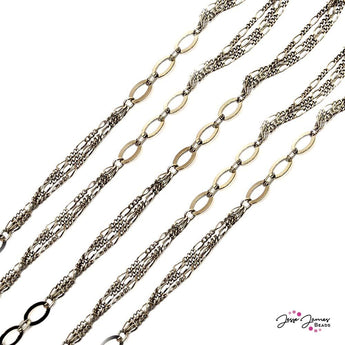 Elegant Figaro chain is made from brass. small link: 4.25mm x 5.19mm large link: 5.8mm x 9.07mm. small links open. Chain is sold in 1 foot increments.