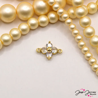 The Golden Blossom Connector Charm feature exquisite flower-shaped links with pave cubic zirconia accents for a touch of sparkle. Crafted from rack-plated brass and real 18K gold-plated for long-lasting durability, these charms are lead-free and cadmium-free for safe wear. Measuring 13.5x10x4mm with a 1mm hole, they’re perfect for adding elegance and shine to your DIY jewelry creations.