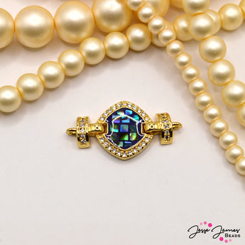 The Indigo Connector Charm features a striking rhombus shape adorned with micro pave clear cubic zirconia, enamel, and shell accents for a touch of elegance and color. Crafted from rack-plated brass and real 18K gold-plated for a durable, long-lasting finish, these charms are lead-free and cadmium-free. Measuring 14x26x4mm with a 1.4mm hole, they’re perfect for adding a bold, sophisticated flair to your custom jewelry creations.
