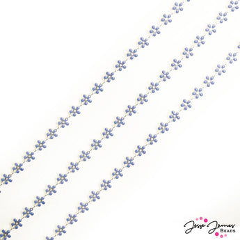 Elegant and cool, this periwinkle shade is perfect for creating cool weather jewelry. Each cut in pre-measured in 18 inch pieces. Links measure roughly 6mm x 8.7mm x 0.7mm.