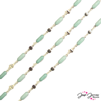 A playful and whimsicle minty hue perfect for creating winter wonderland inspired jewelry. Each cut in pre-measured in 18 inch pieces. Links measure roughly 16mm x 4mm x 3.5mm.