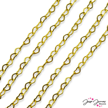 Made for the designer with a heart of gold, this simple chain features heart-shapes links. Adding an intimate touch to necklaces, bracelets, and more. Sold in 1 meter increments. Links measure 5x7x0.7mm