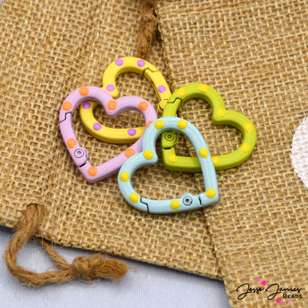 Add a pop of playful charm with our Pastel Love Heart Statement Clasps! These heart-shaped clasps come in a set of soft pastel colors, each adorned with delightful polka dots. Perfect for necklaces, bracelets, or other jewelry creations, they’re more than just functional—they’re a sweet and stylish finishing touch. Let these clasps bring a sprinkle of fun to your designs! Each clasp measures 25mm.