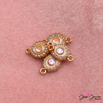 Add a touch of dazzling magic to your jewelry with this set of 4 crystal rhinestone and gold connectors. These connectors shimmer with the kind of light that could only come from a fairy’s secret stash of stardust! Perfect for transforming into pendants with other beads or simply adding a bit of glittering charm to any design. Each connector measures 18mm x 10mm.