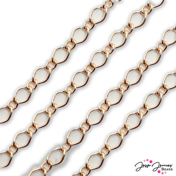 Simple clean and beautiful! These simple curb chains are perfect for designing bracelets, necklaces, earrings, and more. Each link measures 5mm x 8mm. Sold in 1 meter cuts