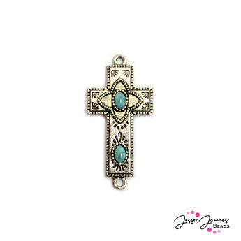 Add a taste of the southwest with this cross shaped connector. Each connector features turquoise stone accenting bright silver.