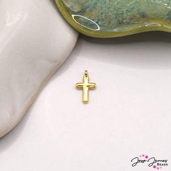Add a meaningful and elegant touch to your jewelry designs with this 18K Gold Plated Brass Cross Charm. Plated with real 18K gold through rack plating, this charm offers a long-lasting and luxurious finish. Lead-free and cadmium-free, it ensures safety for sensitive skin. Measuring 13x7.5x1.5~2.5mm with a 1mm hole, this charm is ideal for creating custom necklaces, bracelets, and other jewelry pieces.