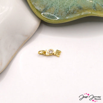 Add a heartfelt touch to your jewelry designs with this 18K Gold Plated Brass Love Cubic Zirconia Charm. Featuring the word Love embellished with sparkling cubic zirconia, this charm is plated with real 18K gold for a lasting, luxurious finish. Made from cadmium-free and lead-free brass, it’s safe for sensitive skin. Measuring 12x3.5x2mm with a 3mm hole and included jump ring, this charm is perfect for creating necklaces, bracelets, and other meaningful jewelry pieces that celebrate love and connection.