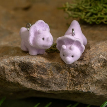 These adorable flocked charms feature a playful light color. Each Triceratops features a light purple hue perfect for adding to bracelets, earrings, and more. Each charm measures 15.5mm x 13mm x 21.5mm. Sold in pairs.