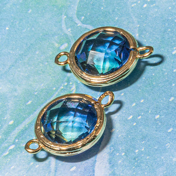 Add a pop of AB sparkle to your next necklace, bracelet or other jewelry creation with these stunning brass connectors. Each connector features a stunning AB glass center surrounded by brass metal Each connector measures approx. 18mm.