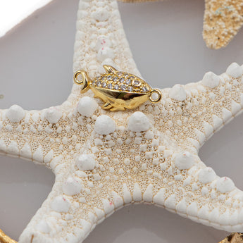 Add a touch of ocean-inspired elegance to your jewelry designs with these Rack Plating Brass Micro Pave Cubic Zirconia Connector Charms. Crafted in the shape of a graceful fish and plated with real 18K gold, each charm sparkles with intricately set micro pave cubic zirconia for a luxurious, eye-catching finish. Measuring 10x21x3.5mm with a 1.4mm hole, these connectors are ideal for creating delicate bracelets, necklaces, or earrings. They’re cadmium-free and lead-free, ensuring a safe, skin-friendly accessory, and feature a long-lasting plated finish that resists tarnishing. Perfect for both professional designers and DIY crafters seeking high-quality, ocean-themed accents.