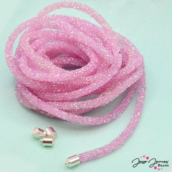 The subtle shimmer of the crystal-infused cord adds a touch of glamour to any project, catching the light and casting a gentle glow. Its jelly-like texture makes it fun to work with and perfect for unique bracelet designs. Sold by the foot. Comes with 4 cord ends. Measure 6mm.