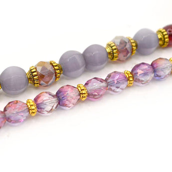 Rich and radiant, the Duo Bead Strand in Fig Jam is a 6 inch double strand brimming with deep, jewel-toned elegance. Featuring Czech glass, gleaming metal spacers, and eye-catching cat-eye style focal beads, this strand offers endless design possibilities. Use it as a ready-made bracelet base or incorporate its lush hues into larger creations for a touch of sophisticated warmth. Largest beads measure 10mm. Smallest beads measure 4mm.