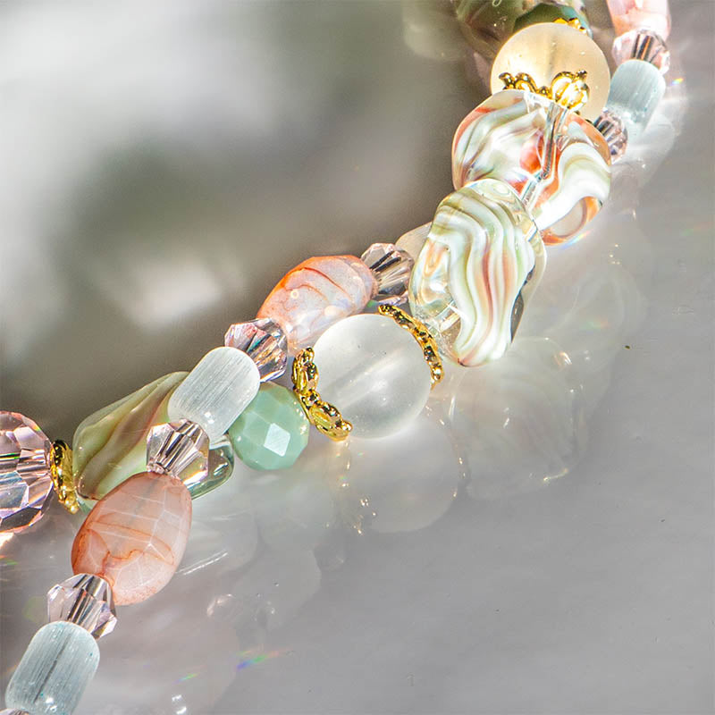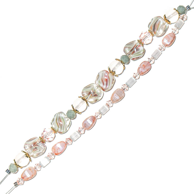 Take a trip to the shore with this Lampwork Bead Strand Duo in Seaglass. Elegant swirled beads in muted pinks and greens will make a timeless jewelry creation. Each 5-inch strand contains 41 pieces. Beads range in size from 3 mm to 10 mm.