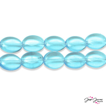 Blue Aqua Flat Oval Czech Glass Beads 12x9 mm 50 pieces