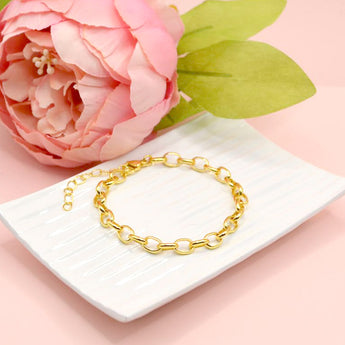 Timeless and versatile, this Rack Plating Brass Oval Link Bracelet is designed to bring understated elegance to any look. Crafted from durable brass, it features classic oval links with a smooth, polished finish and is plated with real 18K gold for a luxurious shine. The bracelet is cadmium-free and lead-free, ensuring it’s safe for everyday wear, while the long-lasting plating offers durability you can rely on. Measuring 7-1/8 inches (18 cm), it provides a comfortable fit and a sophisticated style that transitions seamlessly from day to night. A perfect staple piece, this bracelet makes a refined addition to any jewelry collection. Waterproof.