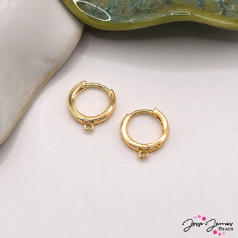 Craft beautiful, custom earrings with these 18K Gold Plated Brass Hoop Earring Findings. Featuring sleek horizontal loops, these findings make it easy to add your favorite charms or beads. Made from durable brass and plated with real 18K gold, they offer a luxurious, long-lasting finish. Each finding measures 15.5x13.5x2.5mm, with a 1.4mm hole and 0.8mm pin.