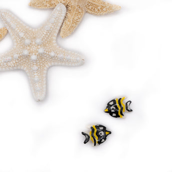 Reel in some seaside charm with these whimsical Handmade Porcelain Fish Beads—perfect for nautical-inspired creations with a playful twist! Each bead is carefully crafted with love and personality, measuring approximately 18x22x7.5mm with a 2mm hole, just right for stringing onto your favorite cord or chain. Choose from three vibrant color combos: ocean-kissed Blue and Pink, tropical Orange and Turquoise, or bold Yellow and Black. Whether you're designing beachy bracelets or fun summer earrings, these fishy friends are ready to swim into your next East Coast-inspired project with splashy style and hand-painted flair!