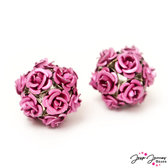 These rose covered metal beads are ready for a Friday night on the town. This darling pink beads add the perfect floral touch to any design. Roses are perfectly shaped and placed. Each bead measures 15mm around, receive 2 pieces per order