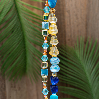 This duo of 7-inch bead strands features several styles of stunning glass beads. Each duo features faceted glass hearts, mini glass ducks, glass bicones, faceted glass cubes, rondelles, and more. The largest bead on the strand measures 10mm x 12mm x 6mm. The smallest bead on the strand measures 4mm. Perfect for creating bracelets, necklaces, or stocking up your bead stash with unique glass beads.