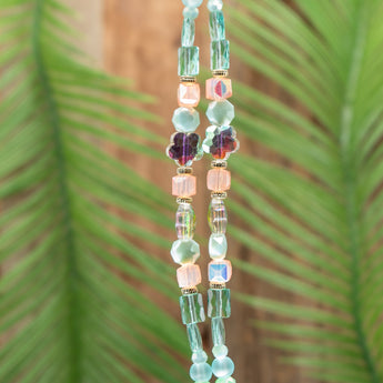Dive into a coastal rom-com with this stunning blend of teal and tan glass beads. This set features two 5-inch crystal glass bead strands perfect for designing earrings, rings, bracelets, and more. Each strand features a blend of stunning faceted glass flower beads, faceted glass geometric coin beads, AB finished crystal glass cube beads, faceted glass mini rectangles, frosted glass rounds, mini faceted glass rondelles, and gold metal bead spacers. The largest bead in this set measures 10mm x 10mm x 5mm. The smallest bead in the set measures 4mm x 2mm.