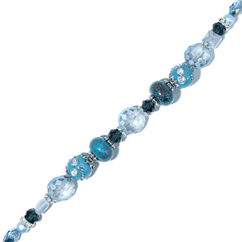 This elegant 7-inch strand combines cool silver tones with rich blue beads for a sleek, sophisticated look. Perfect for crafting timeless jewelry, keychains, or stylish DIY accessories with a touch of icy charm. Each strand features custom boho beads, bright silver spacers and end caps, custom metals, and high-quality glass. Largest bead measures 12mm. Smallest bead measures 4mm.