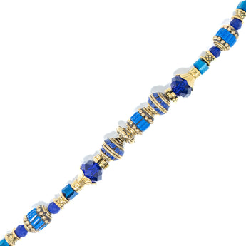This 7-inch bead strand pairs vibrant gold with deep midnight blue for a striking, regal contrast. Ideal for creating bold jewelry, keychains, or standout DIY accessories with a luxurious touch. Each strand features custom boho beads, bright gold spacer and end caps, custom metals, and high-quality glass. Perfect for adding a touch of natural elegance to jewelry, keychains, or craft projects. Largest bead measures 12mm. Smallest bead measures 4mm.