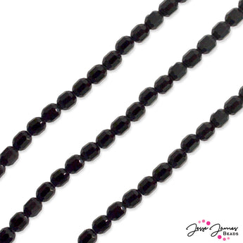 Add flash to the night with ultra facets bitty barrel beads. Glass crystal beads, only the best from Jesse James Beads. 80 beads per strand. Each little piece of midnight measures 5mm x 7mm.