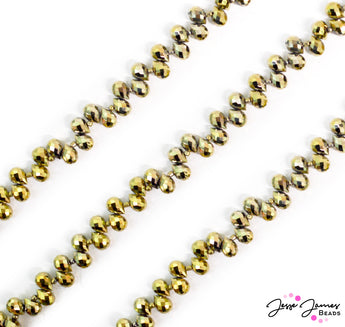 Add grand jewelry accents to any piece with these faceted top-drilled teardrop-shaped glass beads. These beads feature a rich metallic gold color, perfect for pairing with any of our Renaissance-inspired bead strands or mixes. Each bead measures 11mm x 8mm. Each strand includes 95 beads per strand.