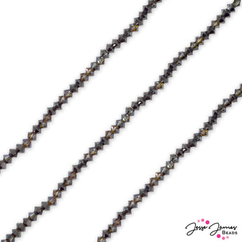 Add a touch of stormy greys to your next daring piece of jewelry. These glass beads are perfect for creating bracelets, earrings, and more. Each bead measures 4mm x 2mm. Over 100 beads per strand.
