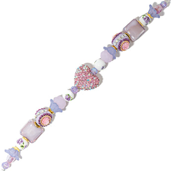 This charming 7-inch strand features a sparkly white and pink heart focal, complemented by printed white and purple floral beads and delicate flower end caps. Perfect for creating romantic, whimsical jewelry and DIY accessories in soft pink and purple hues. Perfect for adding a touch of natural elegance to jewelry, keychains, or craft projects. Largest bead measures 12mm. Smallest bead measures 4mm.