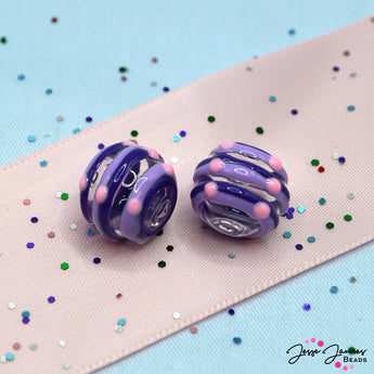 A dazzling duo that’s as fun as it is fabulous! These lamp-work beads are crafted with a mesmerizing swirl pattern, bringing a unique depth and movement to each piece. Topped off with playful pink polka dots for a pop of charm, they’re perfect for creating earrings, bracelets, or necklaces with a touch of whimsy. Each bead measures 14mm x 16mm. 2 Beads per set