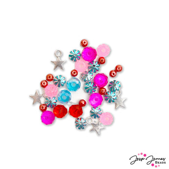 A JJB Christmas cannot be complete without pink! This vibrant mini bead mix features tiny star charms, faceted glass, faux pearls, and more. Largest bead measures 8mm. Smallest bead measures 4mm. All Winter Workshop items start shipping November 16th, 2022.