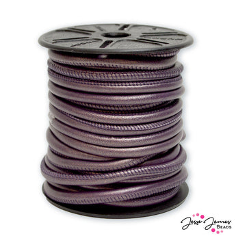 A metalic shimmer and unique stitching pattern makes this leather cord berry special. This 5MM leather is perfect for braiding, jewelry making, crafting, and more. Add your favorite clasps or sliders for an easy layerable bracelet. Leather is sold in 1 ft increments.