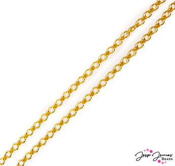 Classic curb chain links with a little twist! This curved curb chain adds a simple and elegant finish to any jewelry project. Sold in 24 inch increments.